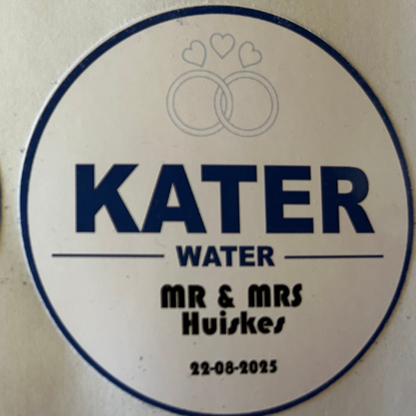De stickers zijn 6cm doorsnee en worden bedrukt met jullie naam