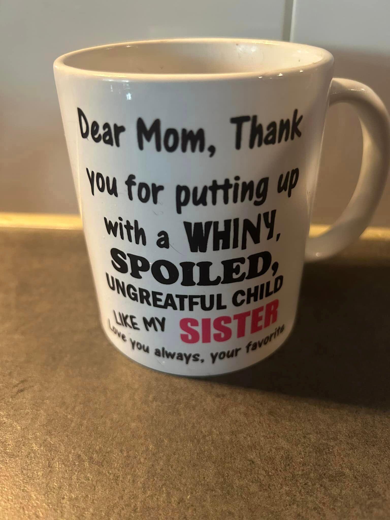 Een leuk cadeau om te geven of te krijgen is een mok met de tekst "Dear mom"