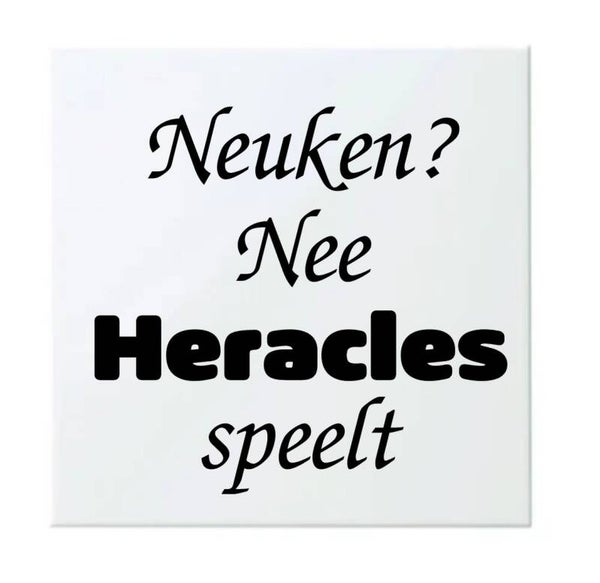 Een leuke tegel met de tekst "Neuken? Nee HERACLES speelt"afmeting tegel : 15x 15 cm