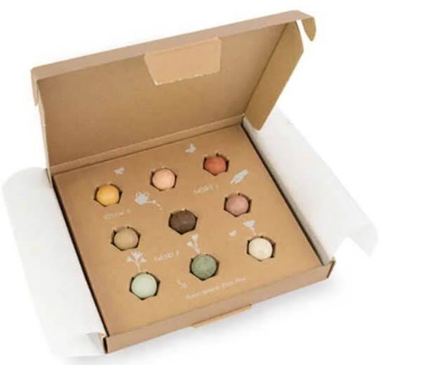 Blossombs Giftbox Medium met 9 zaadbommetjes in verschillende kleuren.