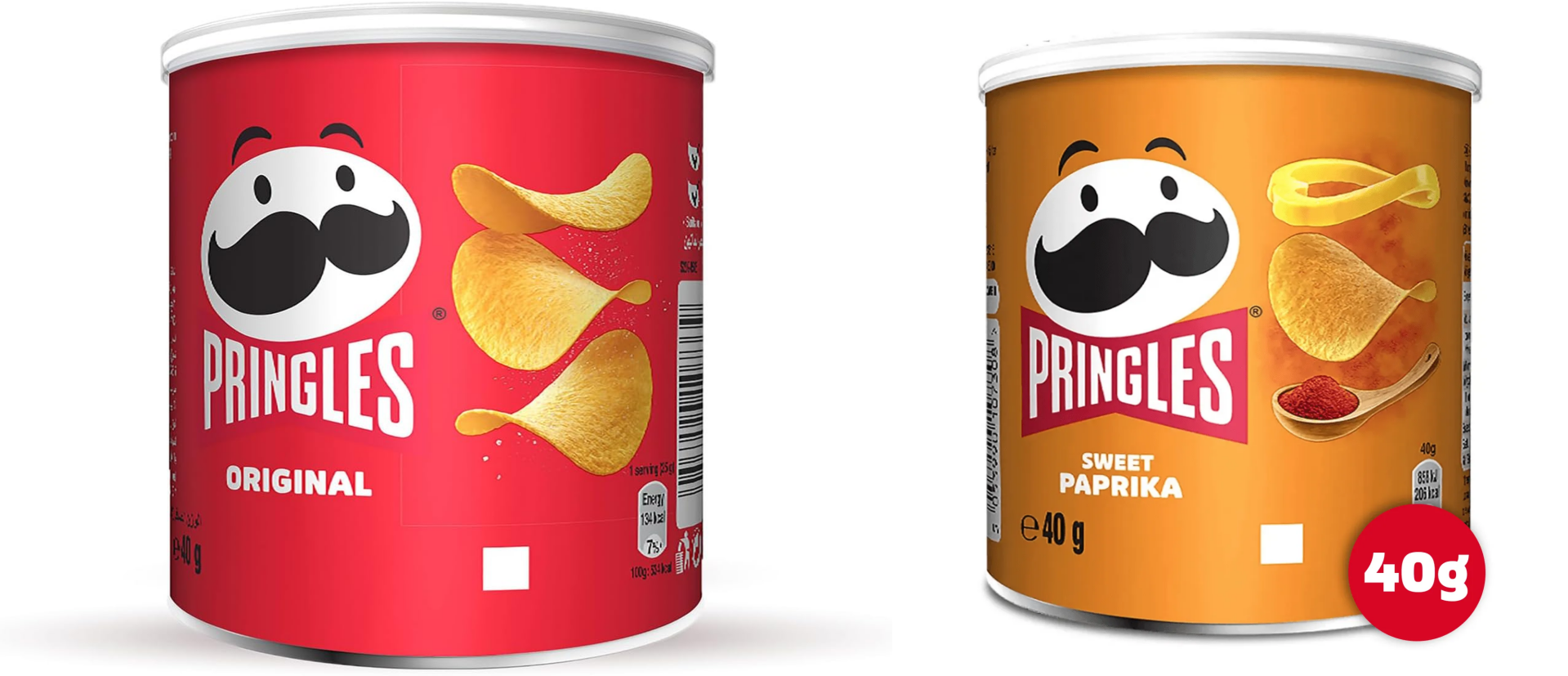 Elke traktatie bevat een Pringles van 40 gram en wordt geleverd met een bijpassende topsticker op de deksel, zodat het één mooi geheel vormt.